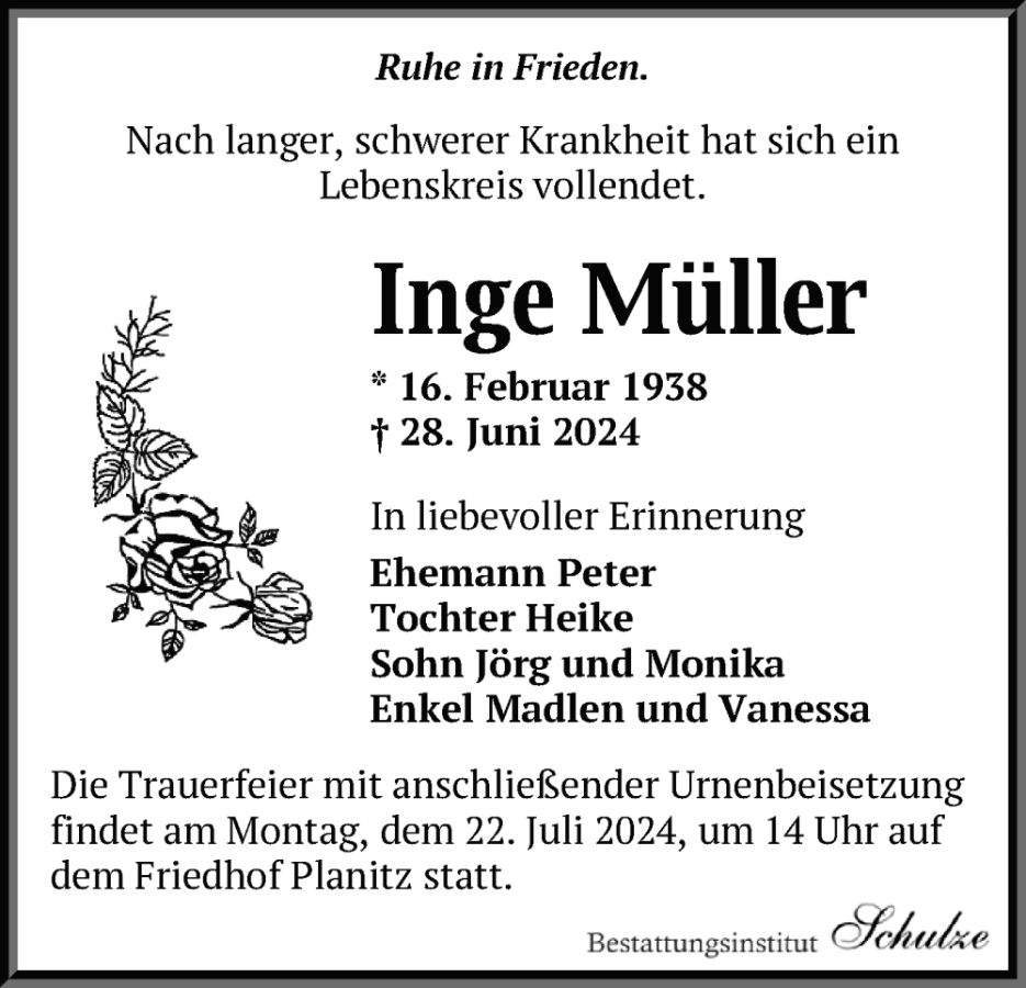 Inge Müllergestorben am 28. Juni 2024