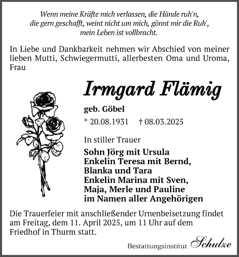 Irmgard Flämiggestorben am 8. März 2025